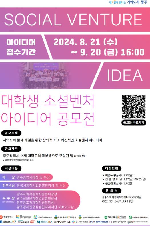 ![]() 광주광역시, ‘대학생 소셜벤처 아이디어 공모전’ 개최 |