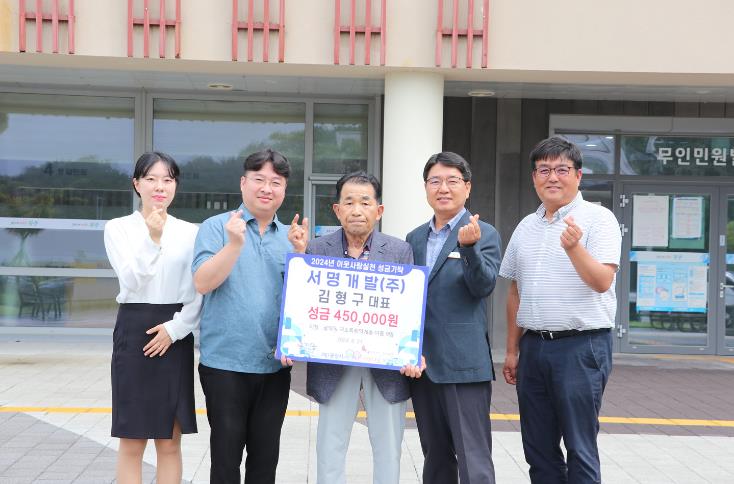 김형구 대표는 “지역 사회와 상생하며 지역에 감사한 마음을 가졌다”라며 “공사 수익금의 일부를 받은 만큼 우리 지역에 지속적으로 후원하고 나눔의 가치를 실천하는 서명개발이 되고자 한다”라며 나눔 실천의 포부를 밝혔다.