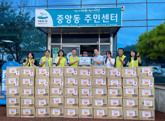 ![]() 코리아월드써비스㈜(대표 김완식)가 지역 이웃을 돕기 위해 지난 21일 여수 중앙동 주민센터를 찾아 500만 원 상당의 라면 200박스를 전달했다. |