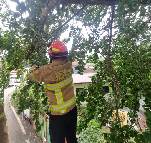 출동대원들은 현장에 인명피해 등 다른 피해가 없다는 것을 확인하고, 30여 분에 걸쳐 톱 등의 장비를 활동하여 나무를 절단하고 안전조치를 완료했다.