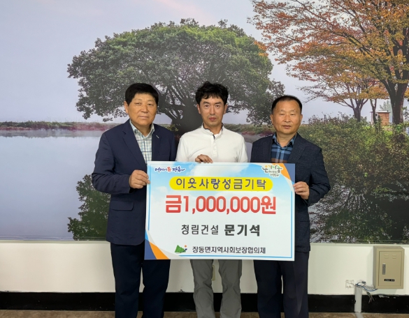 문기석 청림건설 대표가 지난 22일 장흥군 장동면지역사회보장협의체에 이웃돕기 성금 100만원을 기탁했다.