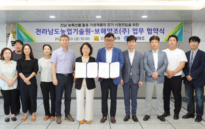 협약은 두 기관이 유기적 협조체계를 구축해, 전남도농업기술원이 보유하한 기술의 사업화를 촉진하고 지역 농특산물을 활용한 다양한 가공제품을 개발하는 내용을 담았다.