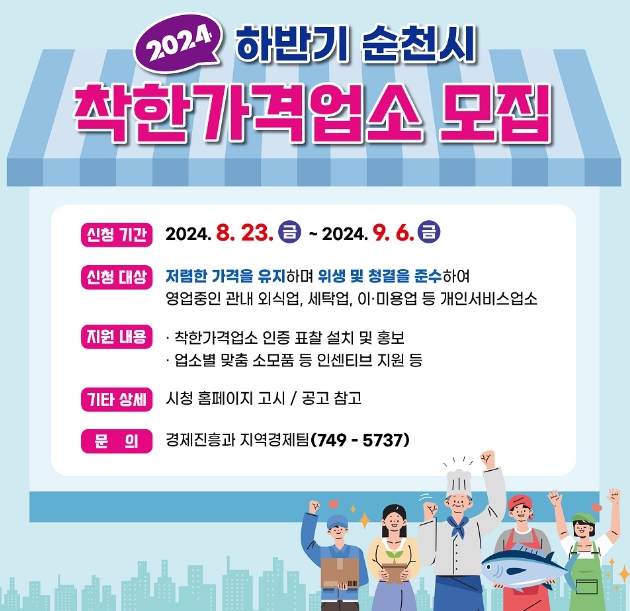 ![]() 순천시, 2024년 하반기 착한가격업소 모집 |