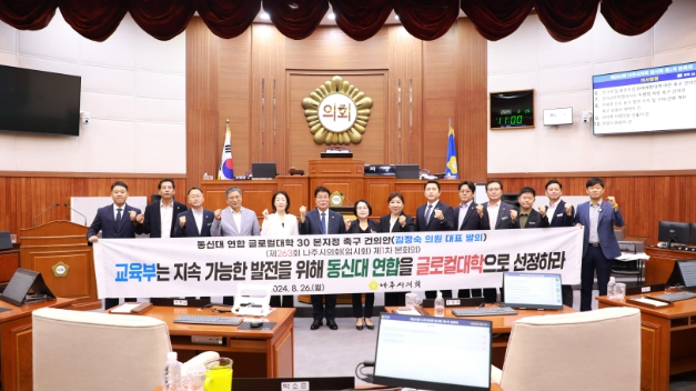 마지막으로, 나주시의회는 예비 지정 대학인 동신대연합이 지역균형발전이라는 명제에 부합하는 ‘글로컬대학 30’사업에 본 지정 될 수 있도록 지원할 것을 다짐하면서 나주시민의 염원을 담아 다음과 같이 촉구하며 발언을 마쳤다.