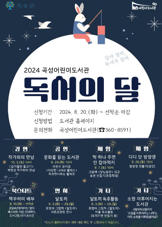 ![]() 곡성어린이도서관,‘독서의 달’함께하세요! |
