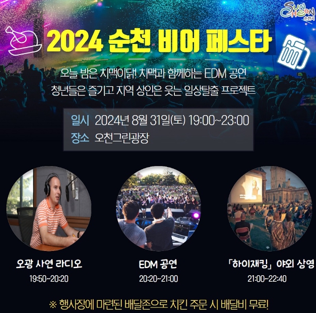 오천그린광장에서 열리는 '2024 순천 비어페스타'는 맥주와 함께 즐길 수 있는 공연과 다양한 프로그램이 마련된다.