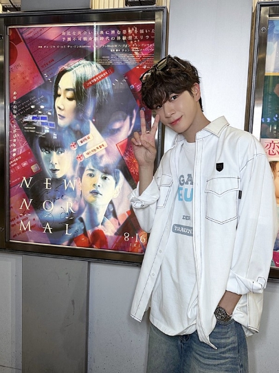 사진 속 정동원은 화이트 컬러 재킷과 청바지, 선글라스를 착용한 캐주얼하고 훈훈한 모습을 선보였다. 그 옆으로 영화 '뉴 노멀'의 일본판 포스터가 보이며 눈길을 끌었다.
