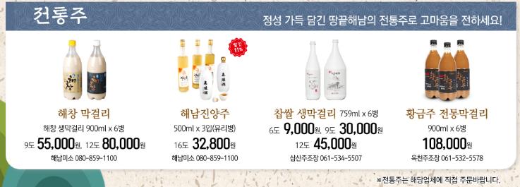 또한 전라남도 무형문화재로 지정되어 있는 해남 진양주도 추석 선물용 세트를 판매한다.