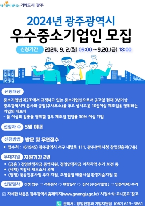 ![]() 광주광역시, ‘2024년 우수중소기업인상’ 공모 |