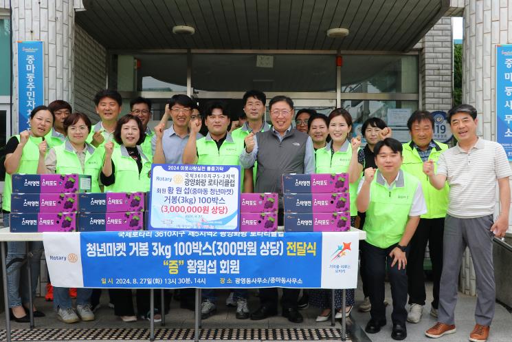 ![]() 광양시 황원섭 청년마켓 대표, 중마동에 거봉 50박스 기탁 |