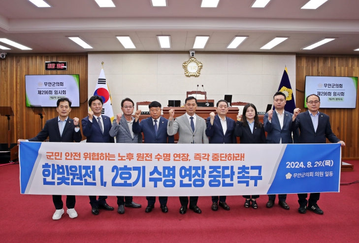 군의회는 먼저 김원중 의원이 대표발의한 ‘한빛원전 1, 2호기 수명 연장 중단 촉구’건의안에서 중대사고 위험성이 가장 높은 한빛원전 1, 2호기의 설계수명 연장 절차를 즉각 중단할 것을 정부에 촉구했다.