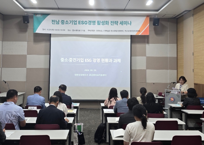 이범우 전남도 기후대기과장은 “2050 전남도 탄소중립을 위해 중소기업의 이행 노력이 무엇보다 중요하다”며 “중소기업 ESG 경영 활성화를 지원하기 위해 도, 유관기관 협의체를 구성해 운영하겠다”고 말했다.
