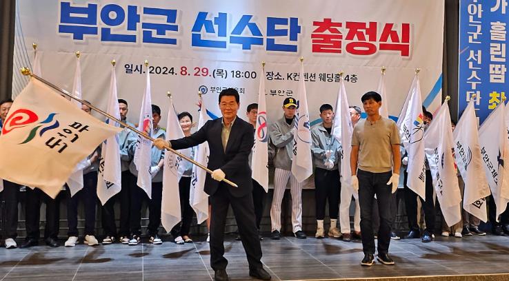 이에 따라, 지난 29일 오후 6시 부안군K컨벤션에서 열린 출정식에서는 권익현 군수를 비롯해 박병래 의장, 전동일 부안군체육회장, 종목별 선수와 임원 등 110여 명이 참석, 선수단에 대한 격려와 함께 도민체전 우승을 위한 결의를 다졌다.
