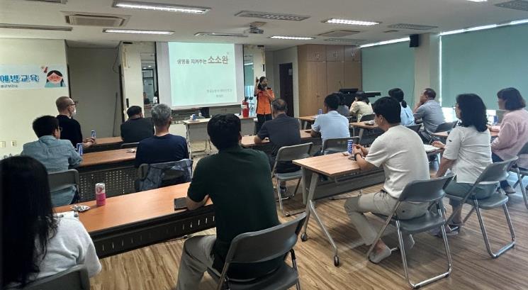 이번 교육은 방역단에 소속된 공무원, 기간제 근로자, 자율방역단 등 30여 명 대상으로 올바른 손씻기, 기침예절, 방역 작업 중 발생할 수 있는 화재, 안전사고 예방을 위해 마련되었다.