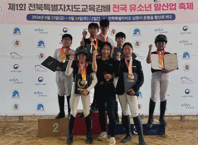 ‘진안군 유소년 승마단’ 소속 학생들의 입상내역은 △장애물 90class : 강린(군산회현중) 1위, 이다영(금산동초) 2위, 주지훈(진안중) 3위 △장애물 80class(중등부) : 임이윤(주천중) 2위, 강린(군산회현중) 3위 △장애물 80class(초등부) : 이다영(금산동초) 1위, 2위, 여준우(금산동초) 3위 △장애물 60class(초등부) : 여준우(금산동초) 2위, 손재연(진안초) 3위 △장애물 40class(중등부) : 강린(군산회현중) 1위 △장애물 20class(초중등부) 박다인(금산추부초) 2위 등이다.