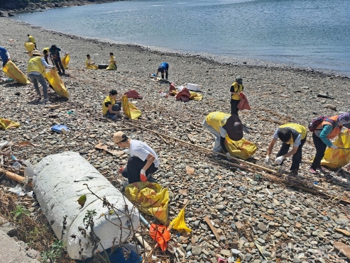 이번 활동에 여수해양환경인명구조단과 한영대학교, 여수꽃사모, 무지개음악단 자원봉사자 등 60여 명이 참여한 가운데 폭염 속 해양쓰레기 줍기를 진행했다.
