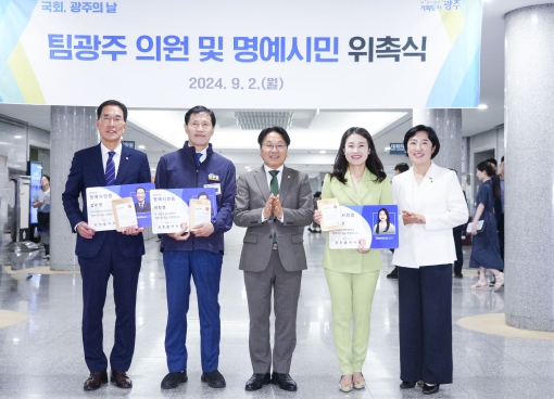 팀광주 의원들은 “팀광주 의원으로 위촉된 만큼 광주발전을 위해 열심히 뛰겠다”며 “광주명예시민으로서 광주시민들이 행복할 수 있도록 국회에서 할 수 있는 최선의 노력을 다하겠다”고 밝혔다.