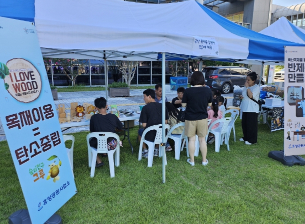 이번 홍보활동은 ‘8월 문화가 있는 날-구석구석 문화배달’ 고흥아트바캉스 행사장에서 군민 및 외부 방문객들을 대상으로 국산 목재의 우수성을 알리고, 국산 목재 이용 시 탄소 저장 효과가 다른 재료보다 우수하며, 온실가스 감축 및 탄소 배출량 저감에도 탁월한 효과가 있음을 홍보하는 기회가 됐다.