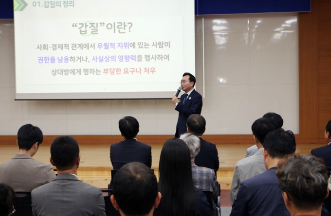 윤병태 시장은 갑질의 정의와 유형, 직장 내에서 빈번히 발생할 수 있는 갑질 사례, 갑질 신고 절차, 건강한 공직문화 조성을 위한 관리자 역할 등에 대해 강연했다.