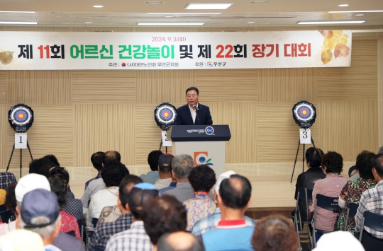 김천성 대한노인회 무안군지회장은 대회사를 통해 “백세시대, 건강한 백세를 위해 평소에 경로당이나 가정에서 어르신들에게 맞는 운동을 생활화 하자”며 “오늘 행사를 통해 여러분의 건강증진과 친목 동호, 화합의 장이 됐으면 합니다”고 말했다.