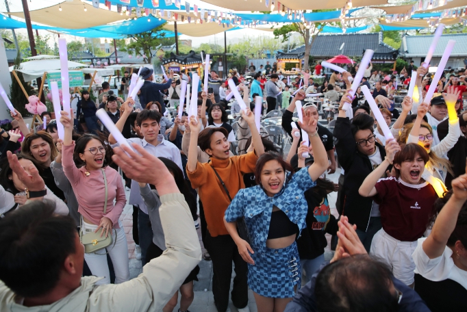 ![]() 지난 4월 19일에 개장한 시즌2 강진 불금불파 행사장에서 관광객들이 EDM DJ공연을 즐기고 있다. |