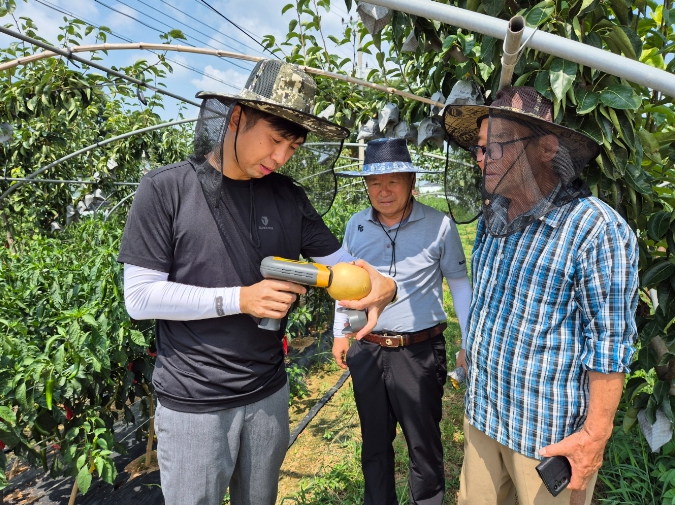 배 전문가로 이루어진 숙기판정단은 1차(19일), 2차(23일, 26일)로 나눠 각 농가가 수확한 배의 당도와 경도 측정 및 현장 시식을 하고 농가와 협의해 8월 말까지 모두 수확 및 계통출하 하기로 결정했다.