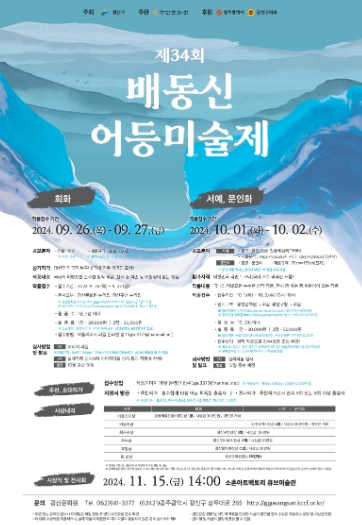 공모는 회화, 서예, 문인화 등 총 세 분야로, 외국인을 포함한 대한민국 거주하는 사람 누구나 1인 2점 이내로 참여할 수 있다. 출품 원서는 광산문화원 누리집과 광산구 누리집에서 내려받을 수 있다.