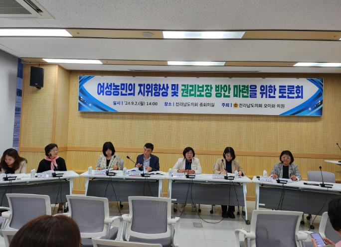 전라남도의회 기획행정위원회 오미화 의원(진보당·영광2)은 도의회 중회의실에서 ‘여성농민의 지위향상 및 권리보장 방안 마련을 위한 토론회’를 개최해 농촌사회의 변화를 주도하는 여성농업인의 중요성을 강조하고 전남도가 가야 할 정책 방향을 논의했다.