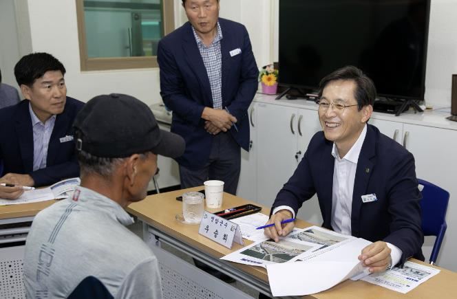 이날 이동 군수실을 찾은 주민들은 ▲부암마을 사거리 교량 모서리 확장 ▲기동마을-신포보건진료소 구간 인도 설치 ▲배드리마을회관 리모델링 등을 건의했다.