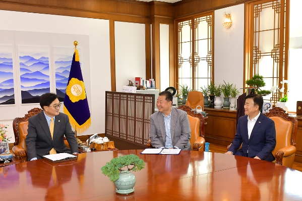 정 시장은 이날 우 의장에게 영호남 화합을 주제로 한 제33차 유엔기후변화협약 당사국총회(COP33) 남해안 남중권 유치와 2026여수세계섬박람회, 공공주도 해상풍력 단지개발사업 등을 설명하고 적극적인 지원을 요청했다.