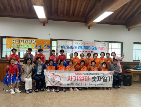 이번 교육은 전남 심뇌혈관질환 예방관리사업지원단, 광주·전남 권역심뇌혈관질환센터, 국민건강보험공단 등 3개 유관기관과 협력하여 망룡보건진료소를 중심으로 6월부터 9월까지 주 1회, 총 13회차로 운영됐으며, 수료식에는 50여명이 참석해 자리를 빛냈다.
