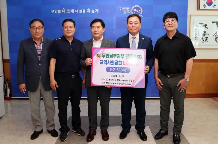 기탁식에는 무안남부지부 회원 25여 명이 참여하여 따뜻한 추석 명절을 보낼 수 있도록 돼지고기 300박스(박스당 2kg)를 무안군에 전달했다.