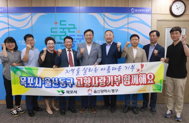 이번 방문은 지난 3월 말 울산 동구가 고향사랑기부제 모금 활성화 선진지 견학으로 목포를 방문하고, 지난 4월 고향사랑기부금 상호기부로 이어졌던 것이 인연이 되어 마련됐다.