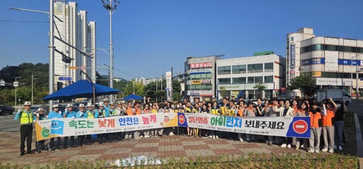 캠페인 참가자들은 현수막 등 홍보물을 활용해 ▲일단 멈춤, 아이먼저 보내주세요 ▲ 속도는 낮게 안전은 높게 ▲서다, 보다, 걷다 안전하게 횡단보다 건너기 등 어린이보호구역 내 안전 운전과 관련된 홍보활동을 펼쳤다.