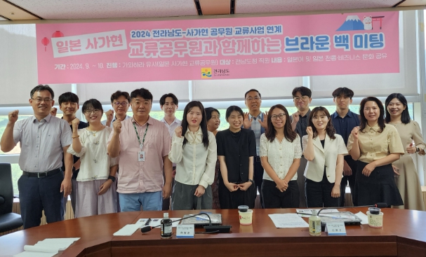 신현곤 전남도 국제협력관은 “브라운 백 미팅은 도 직원이 일본어와 일본 문화를 배우면서 글로벌 감각을 키우는 데 큰 도움이 될 것”이라며 “이번 기회를 통해 직원들이 국제 교류에 더욱 능동적으로 참여하길 바란다”고 말했다.