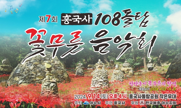 ![]() ‘흥국사 108돌탑 꽃무릇 음악회’가 오는 14일 오후 4시부터 7시까지 여수 흥국사 일원에서 개최된다. |