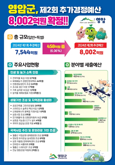 ![]() 영암군, 2024년 제2회 추경예산 8,002억원 확정 |