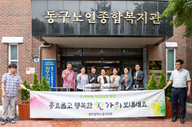 문선화 의장을 비롯한 동구의회 전체 의원들은 관내 노인시설, 장애시설, 지역아동센터 등 20여 개 복지시설에 백미와 라면 등 명절 선물을 전달한 가운데 특히 더위에 취약한 어르신들을 위로하는 마음을 담아 동구노인종합복지관을 찾아 어르신과 시설 종사원들을 격려하는 시간을 가졌다.