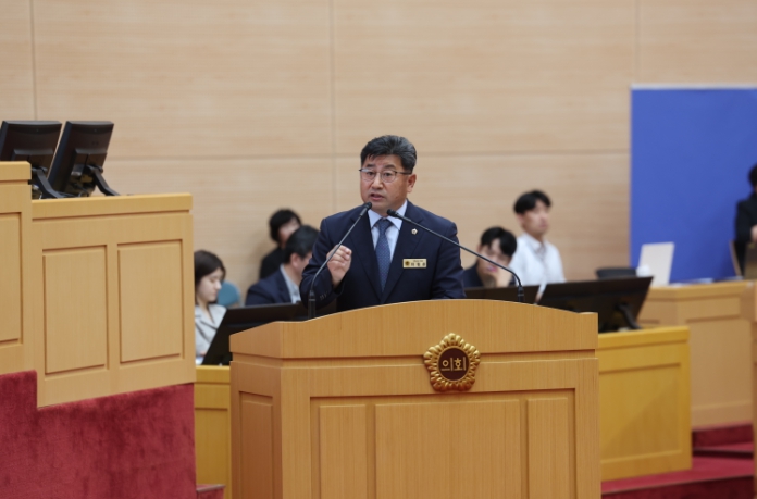 ![]() 최정훈 전남도의원이 제384회 임시회 제4차 본회의에서 도정질문을 하고 있다. |