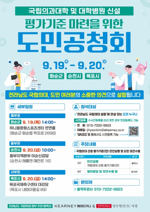 용역 주관사인 에이티커니코리아와 지평이 진행하는 이번 공청회는 오는 19일과 20일 화순․순천․목포에서 각각 진행된다.