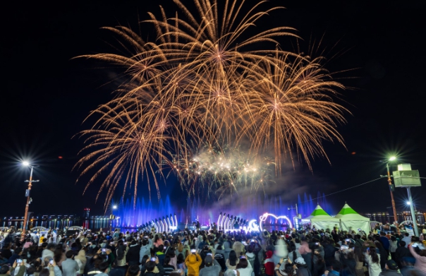 이후 케이팝에 맞춰 춤추는 음악분수와 화려한 불꽃이 어우러진 뮤직 불꽃쇼가 10여 분간 진행되며 목포 가을밤의 낭만을 관람객과 함께 나눈다.