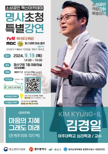 이번 강연은 김경일 아주대학교 심리학과 교수가 진행하며 ‘마음의 지혜 그래도 미래(관계주의와 피드백)’라는 주제로 19일 구청 7층 윤상원홀에서 소통에 관한 이야기를 풀어낸다.