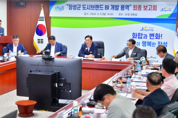 군은 9일 군청 상황실에서 ‘도시 브랜드 비아이(BI, 브랜드 아이덴티티) 개발용역 최종보고회’를 열고 용역 결과인 ‘성장장성’ 브랜드에 대한 최종 의견을 수렴했다.