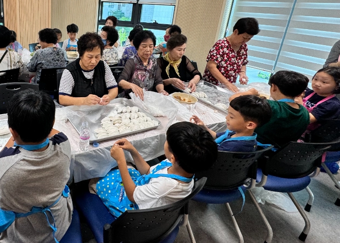 광주효동초 늘봄학교 1학년 학생들은 지난 9일 중흥동 행정복지센터에서 효동경로당, 중흥시니어경로당 어르신, 자원봉사자와 함께 송편을 만들었다.