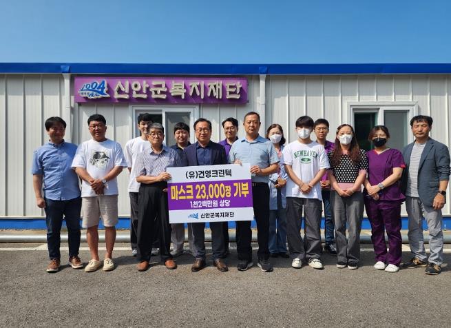 ![]() 신안군복지재단, (주)건영크린텍 감염병 예방 방역물품 지원 |