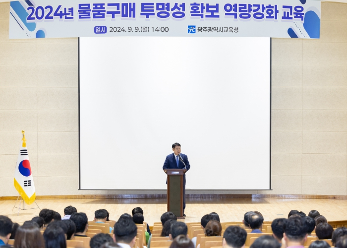 이와 관련, 시교육청은 지난 9일 광주교육시민협치진흥원에서 각 학교와 기관 업무 담당자 등 400여 명을 대상으로 ‘물품구매 투명성 확보 역량 강화 교육’을 실시했다. 이날 교육은 전문 청렴강사를 초빙해 ‘2024년 광주교육청 청렴 정책’을 소개하고, ‘청탁금지법’, ‘청렴과 소통의 관계‘ 등을 사례 중심으로 안내했다.