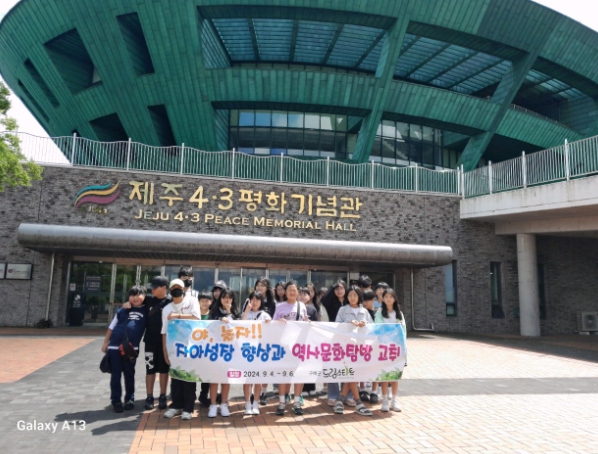 탐방에 참여한 아동들은 4.3사건 평화공원 관람을 시작으로 성산일출봉, 카멜리아힐 등 다양한 역사 체험과 생태 문화 체험을 통해 자연의 소중함과 문화유산의 가치를 깊이 이해하는 시간을 보냈다.