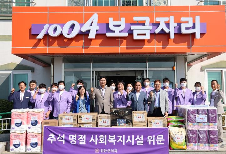 신안군의회는 매년 명절에 관내 사회복지시설을 방문하여 위문품을 전달하고 사회적 관심이 필요한 이웃들이 소외되지 않도록 이웃사랑 실천과 나눔 문화 확산을 위해 노력하고 있다.