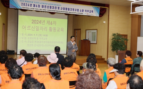 이번 교육은 사회서비스형과 시장형 등 총 5개 사업단의 110명의 어르신을 대상으로 노인성 안과질환 예방 관리와 사업별 직무교육을 실시했다. 사회서비스형은 노인의 경력과 활동 역량을 활용해 다양한 서비스를 제공하며, 시장형은 노인에게 적합한 소규모 매장 운영 등으로 일자리를 창출하는 사업단이다.