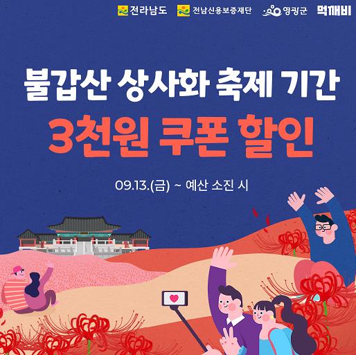군 관계자는 “불갑산상사화축제 기간 중 진행하는 특별 이벤트인 만큼 먹깨비로 주문해서 할인 쿠폰도 받고, 소상공인에게 도움이 되는 착한 소비에도 많이 동참하여 주시기 바란다.”고 말했다.